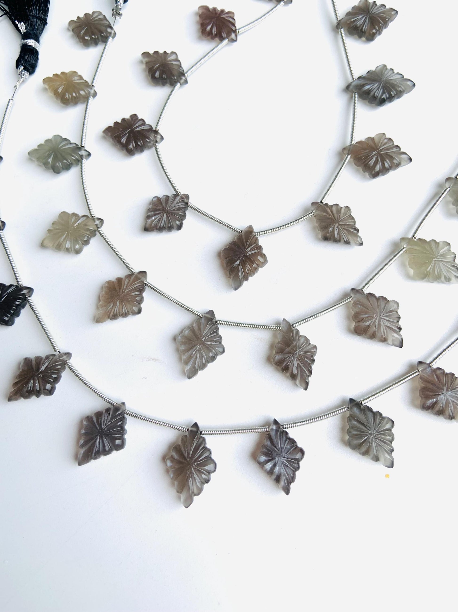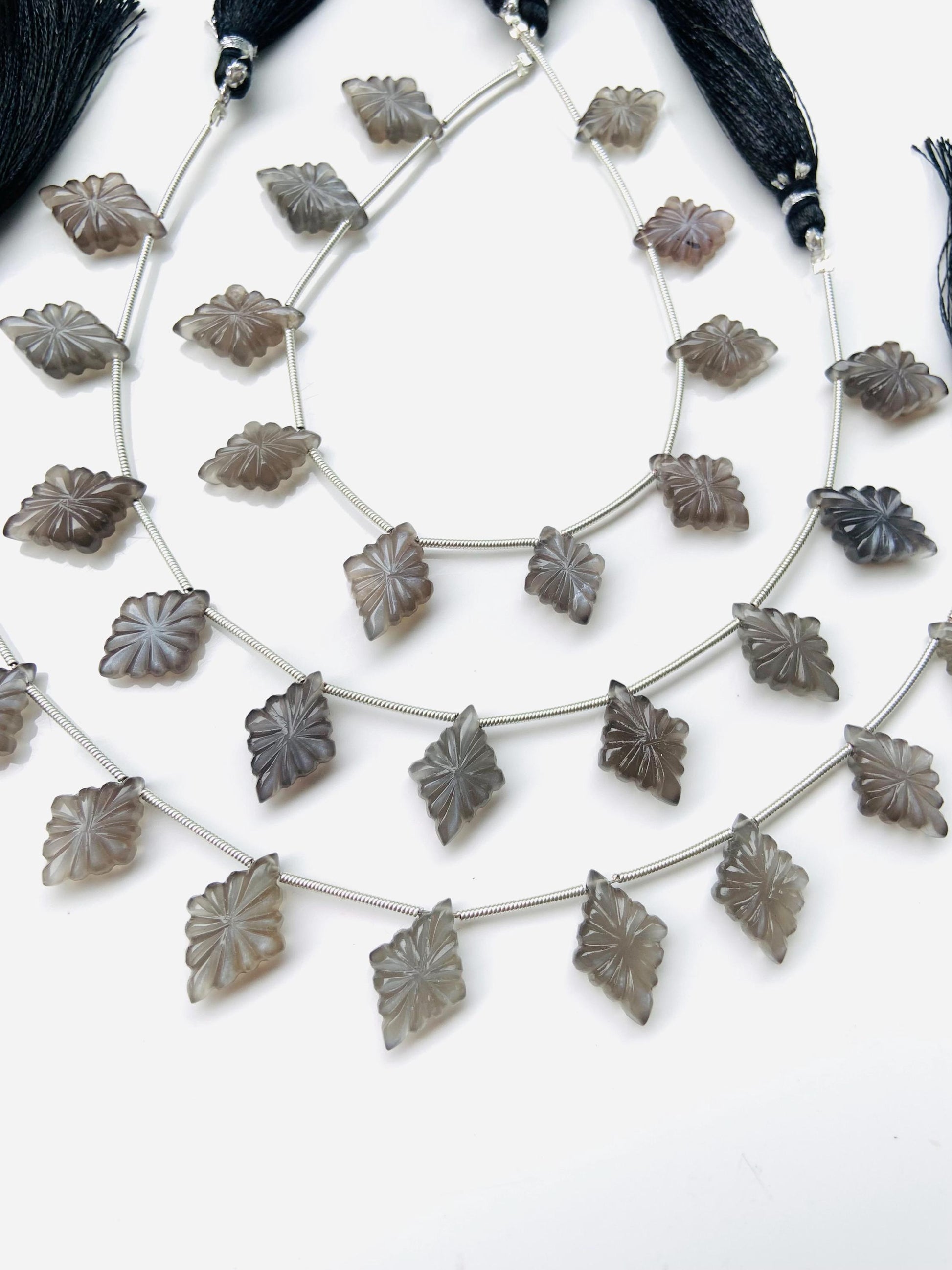 10 Pieces Natural Grey Moonstone Slot Carved Side drill gemstone Fancy shape Briolette lozenge bead for jewelry Size 11x15x4mm gift for her
