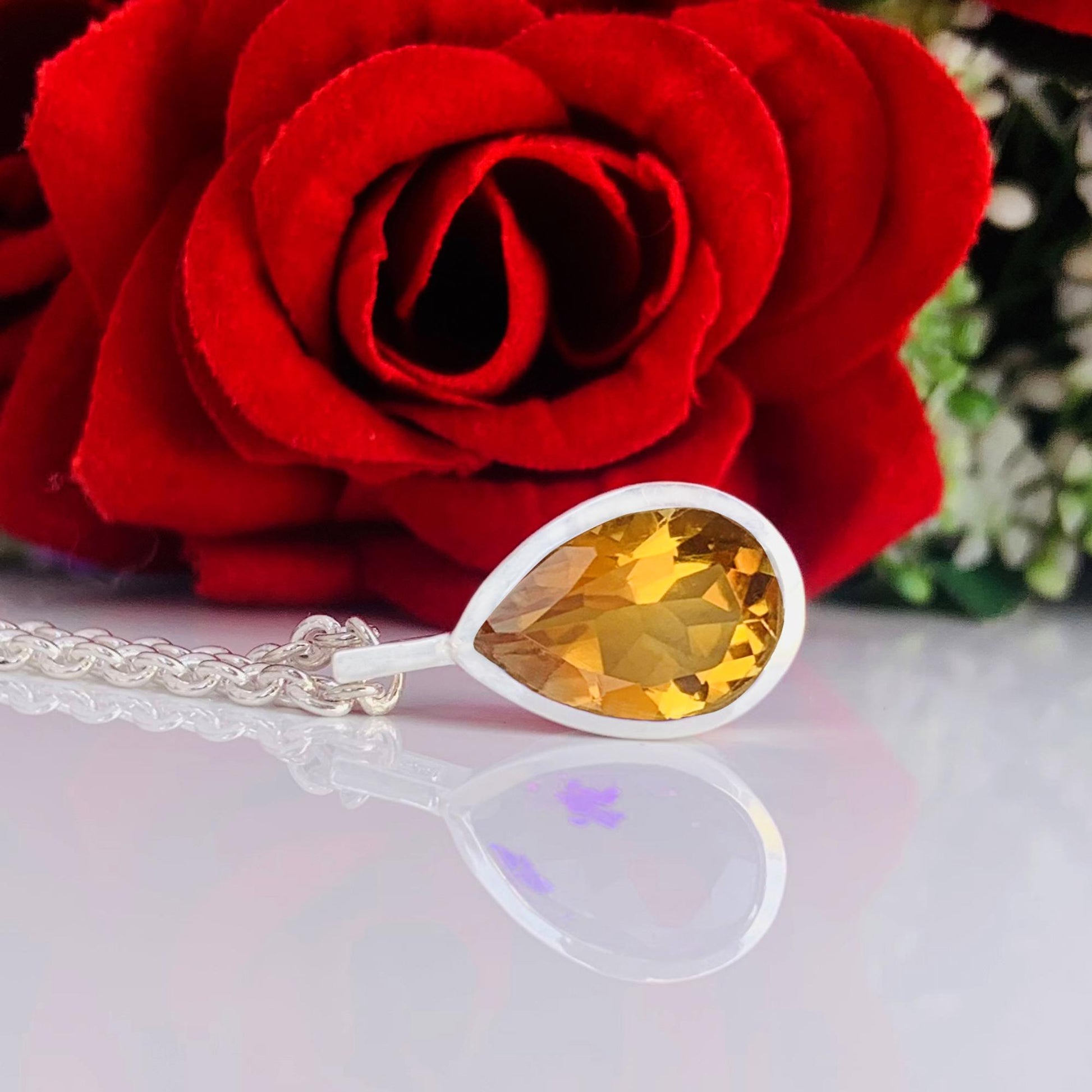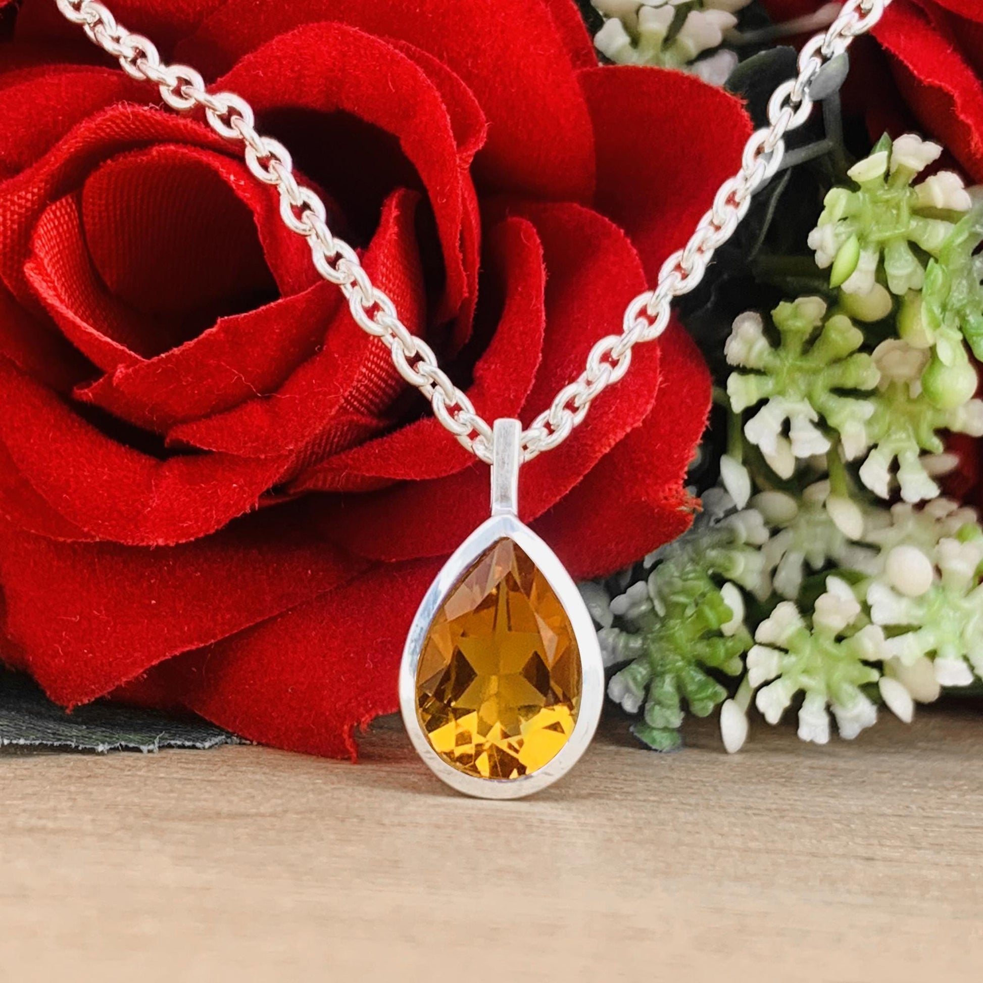 Simple, beautiful natural citrine pear pendant in dainty minimalist style—perfect November birthstone necklace or gift for her. Premium craftsmanship with silver/gold/rose gold/black finishes available.