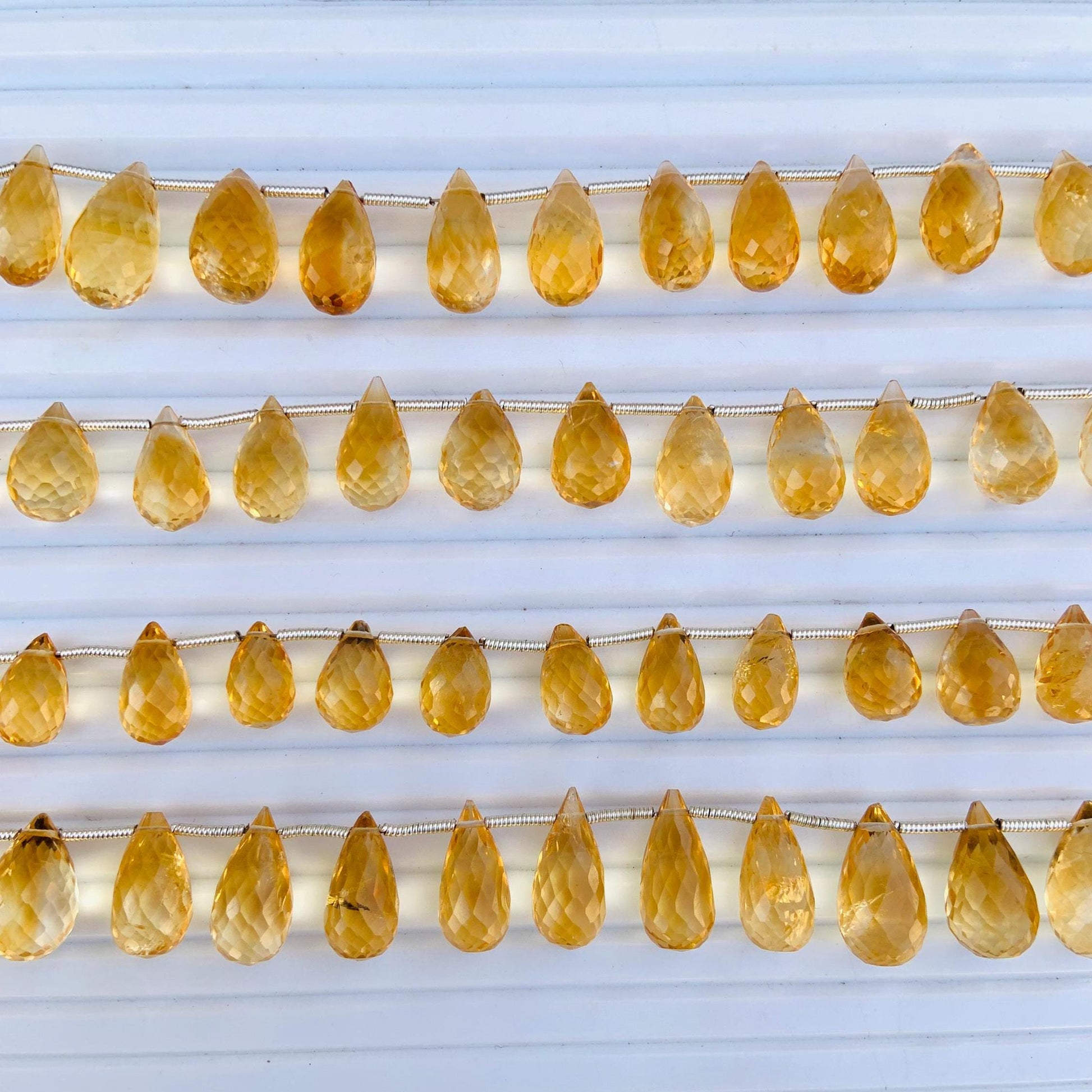 Natural Citrine Faceted Beads 5x8mm–6x9mm | Teardrop Briolette Gemstone Beads