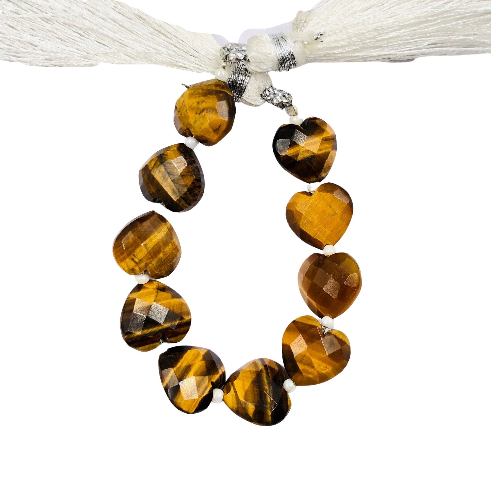 Natural Tiger Eye Heart Gemstone Beads – 10pcs Faceted & Hand Carved